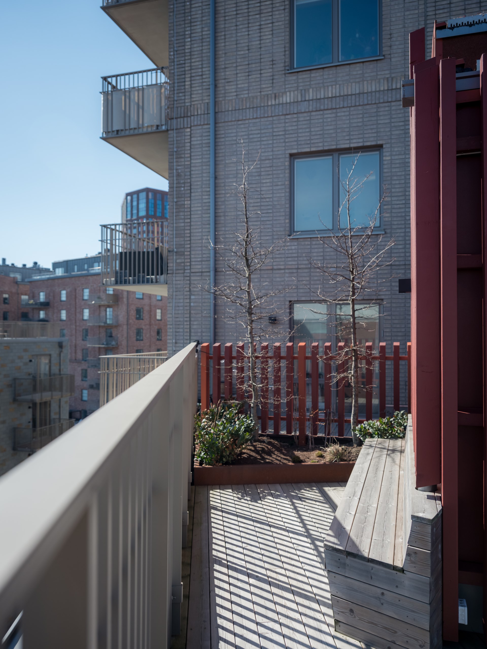 Vardagsrummet är lättmöblerat och flexibelt med plats för soffgrupp och ytterligare möblering efter behov. Helheten präglas av genomtänkta detaljer som gör bostaden både funktionell och hemtrevlig. Förvaringen är dessutom något utöver det vanliga, med två rymliga klädkammare och flera garderober som gör det enkelt att hålla ordning. Från köket nås balkongen med härlig eftermiddagssol, en perfekt plats för avkoppling i kvällsljuset eller sommarens måltider utomhus.