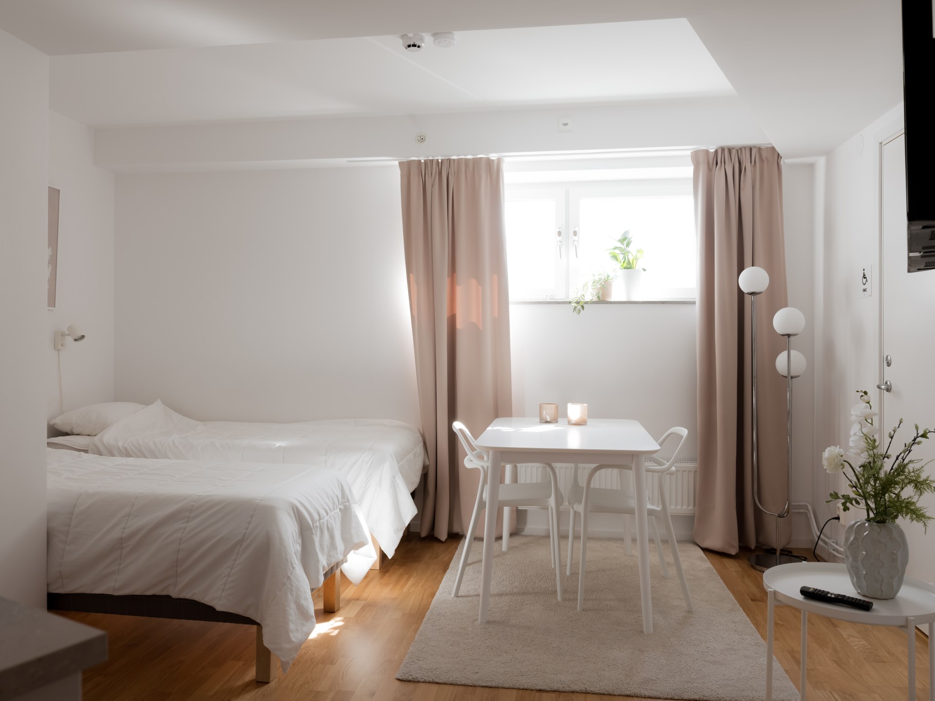 Bostaden välkomnar med en luftig och flexibel planlösning där sovdelen enkelt kan skärmas av och skapa en privat sovalkov. Här får du känslan av en smart planerad tvåa, med fortsatt generöst ljusinsläpp och fin rymd.