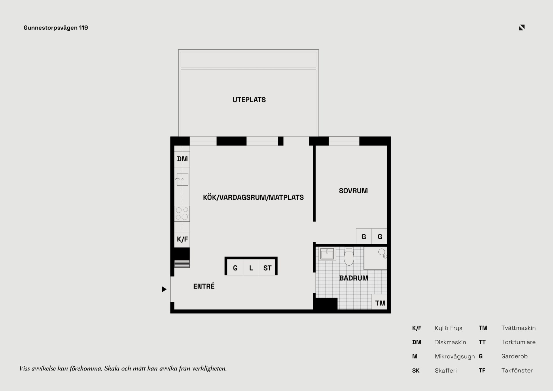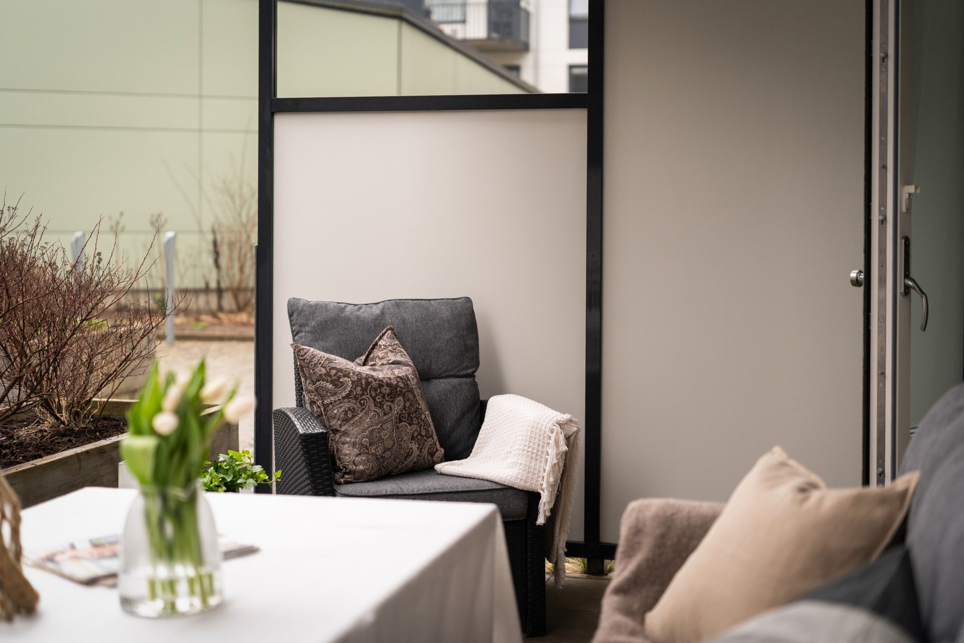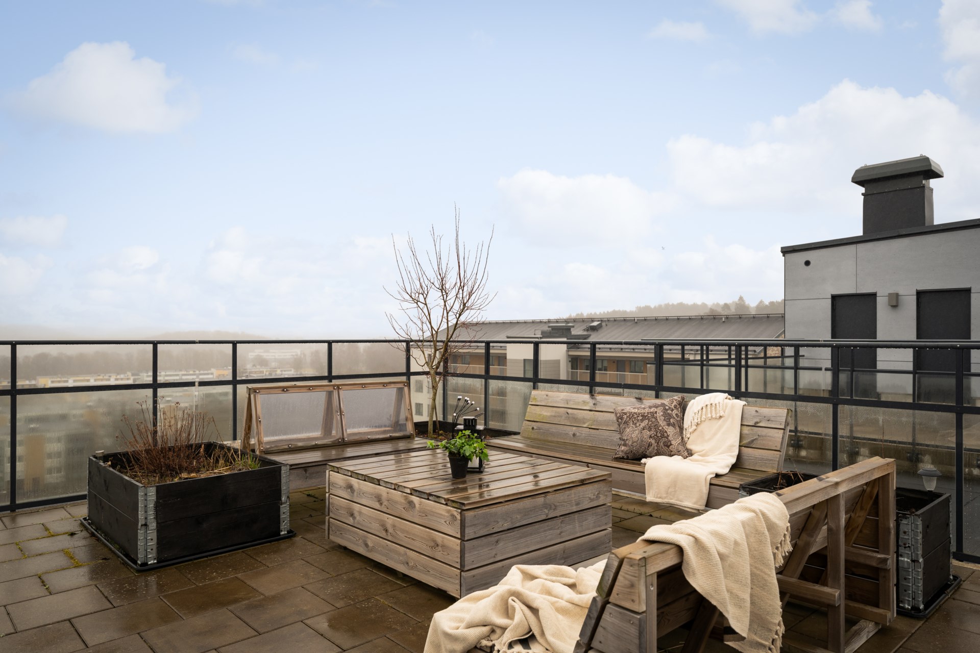 Modern och välplanerad tvåa med uteplats och tillgång till gemensam takterrass med härlig utsikt.