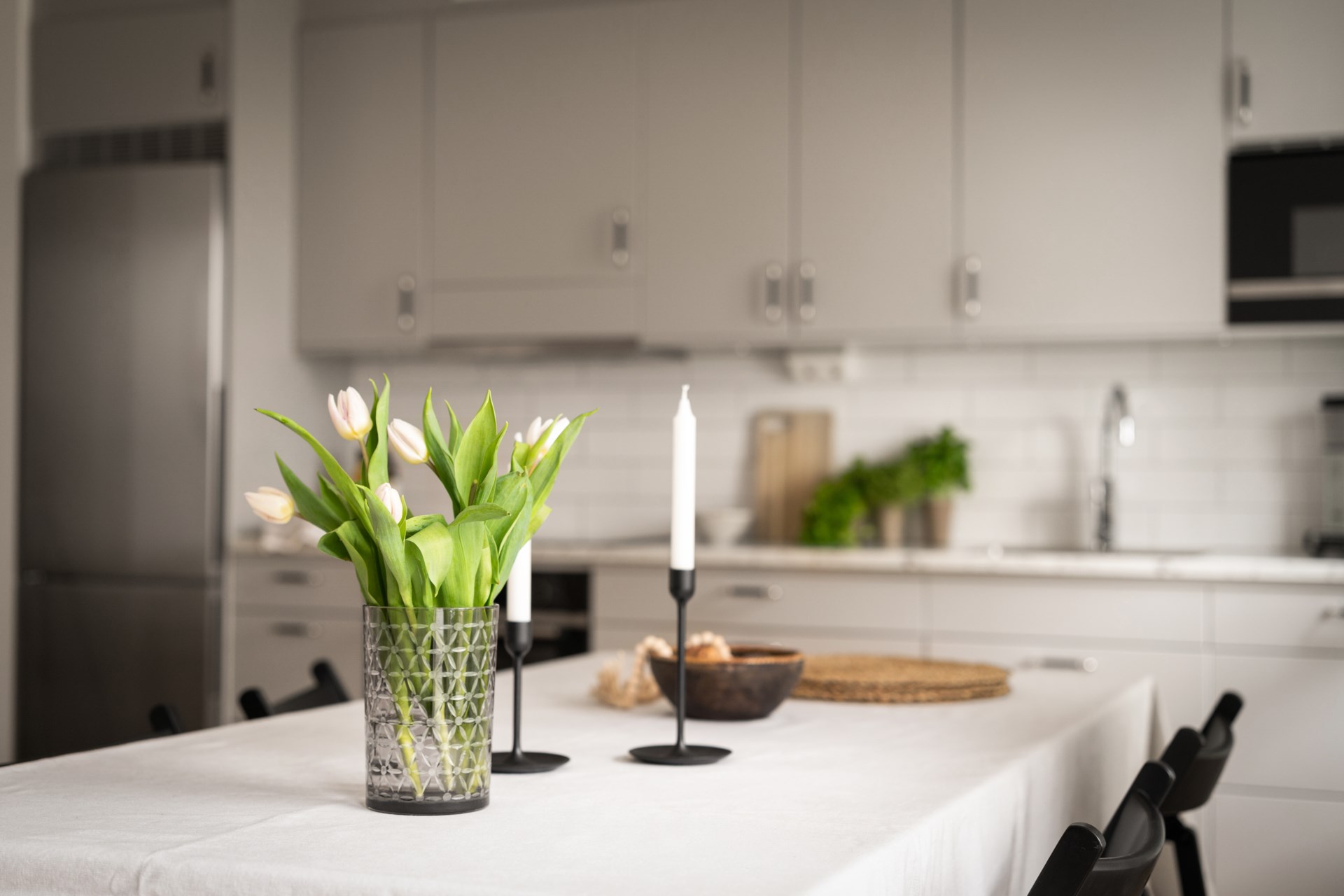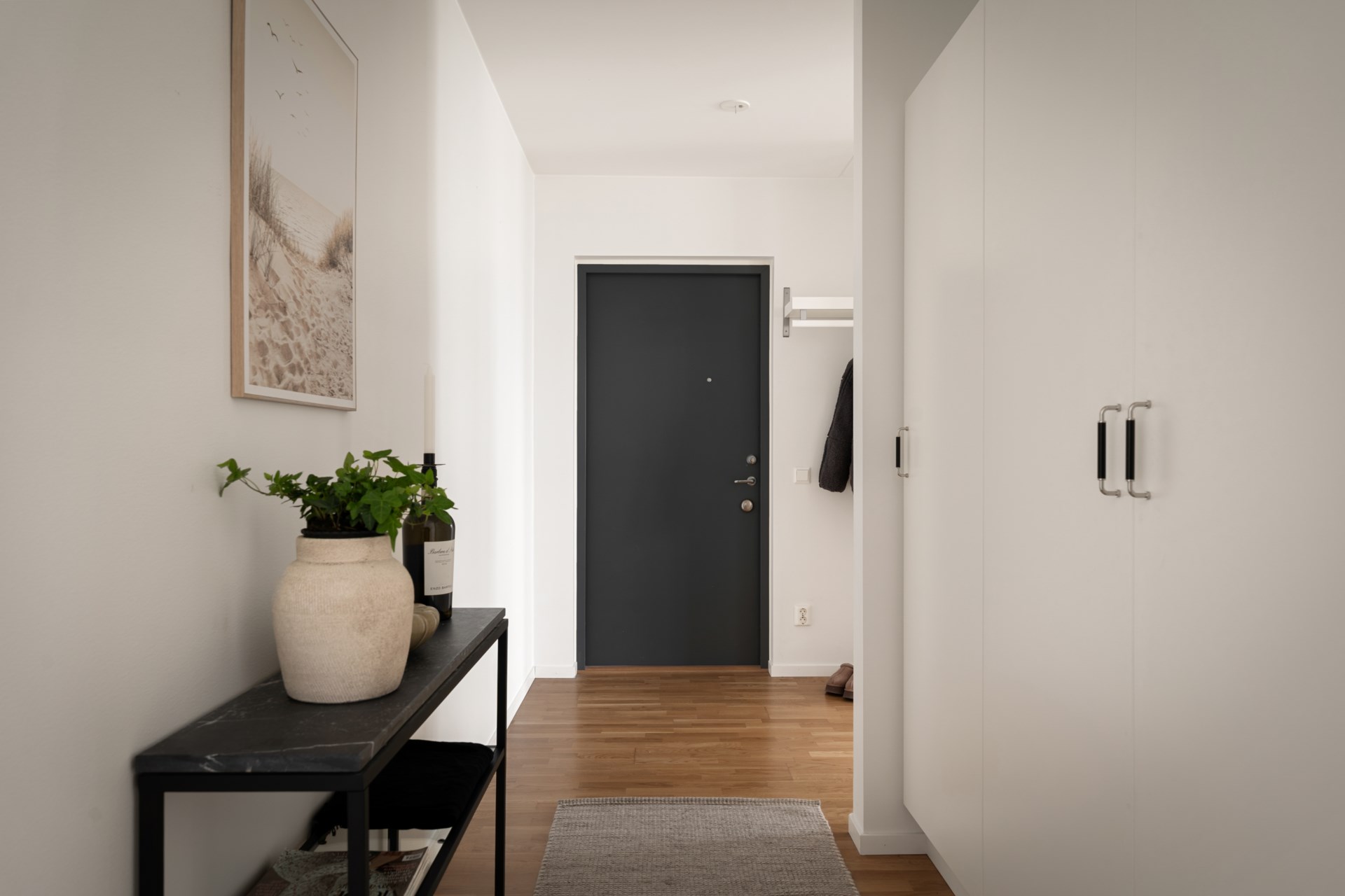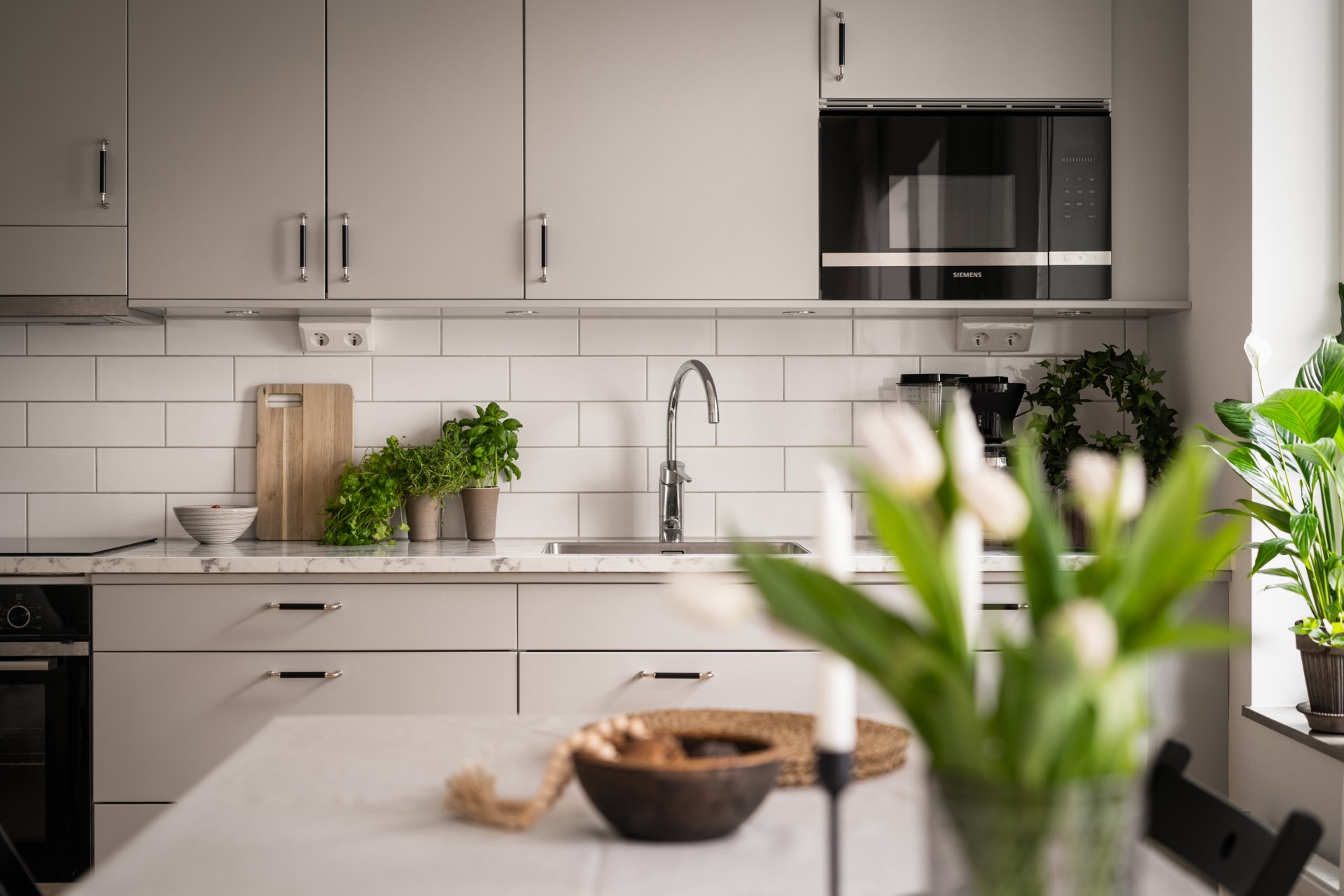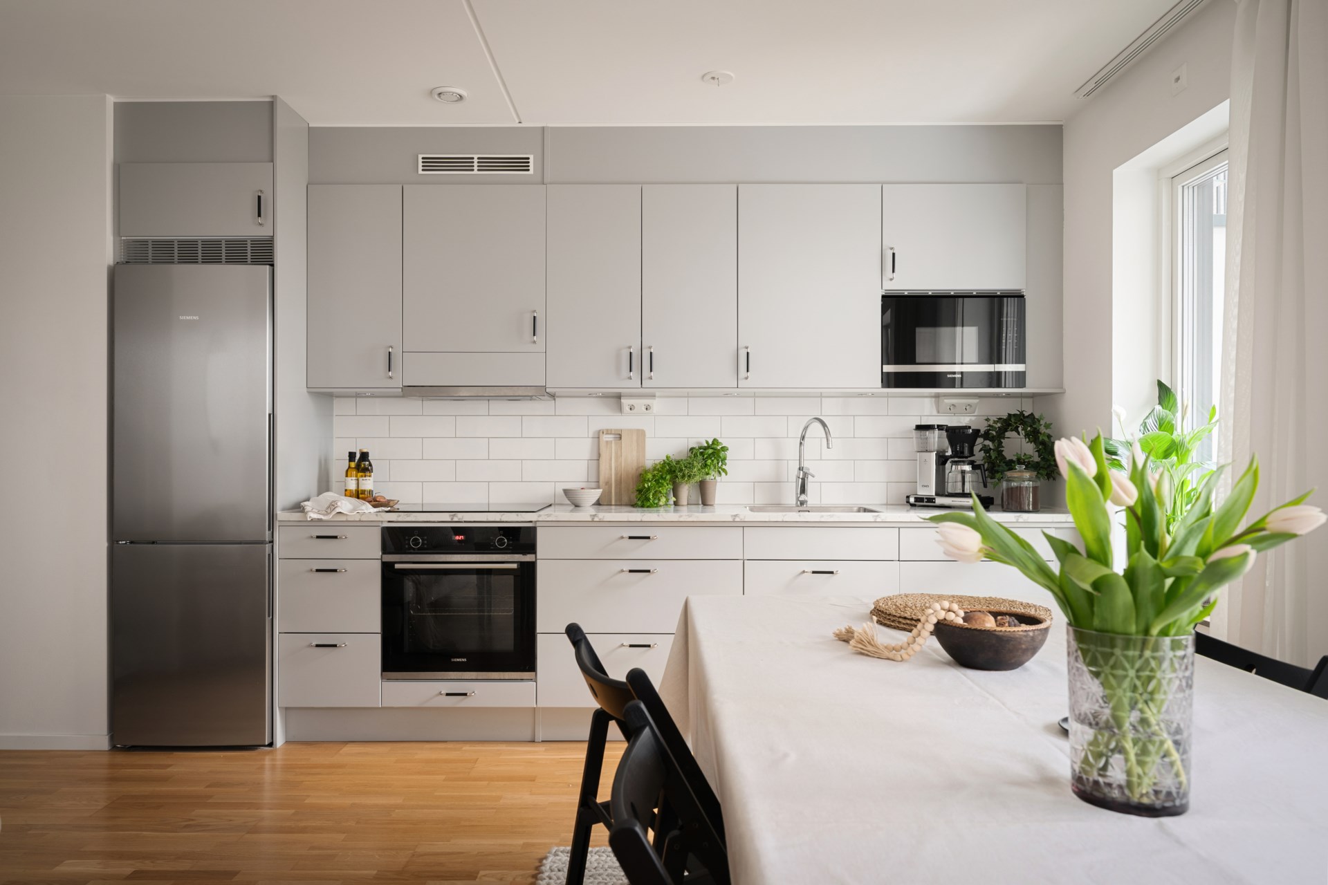 Ett hem med stilrena materialval och en social planlösning där det öppna köket möter vardagsrumsdelen på bästa sätt. Här bor du fräscht och bekvämt med härligt ljusinsläpp, fina ytor för både soffgrupp och matplats samt ett kök som bjuder in till matlagning och umgänge. Den kompletta maskinparken och de generösa arbetsytorna gör vardagen smidig, oavsett om du lagar vardagsmiddag eller dukar upp för vänner.