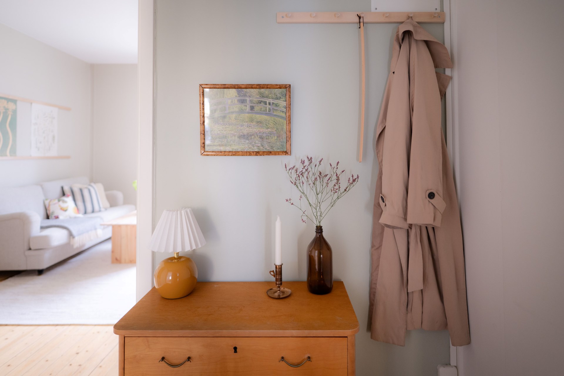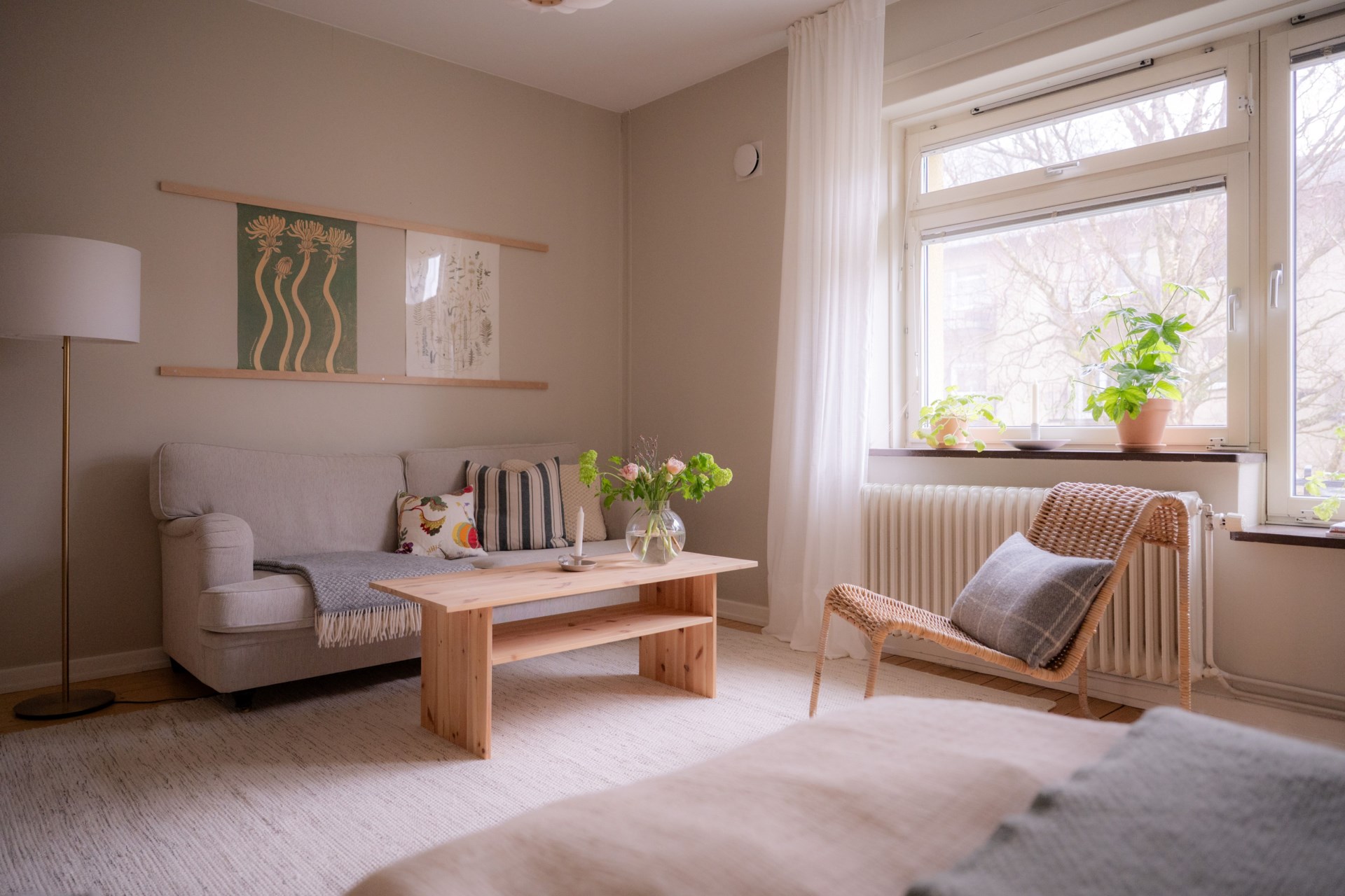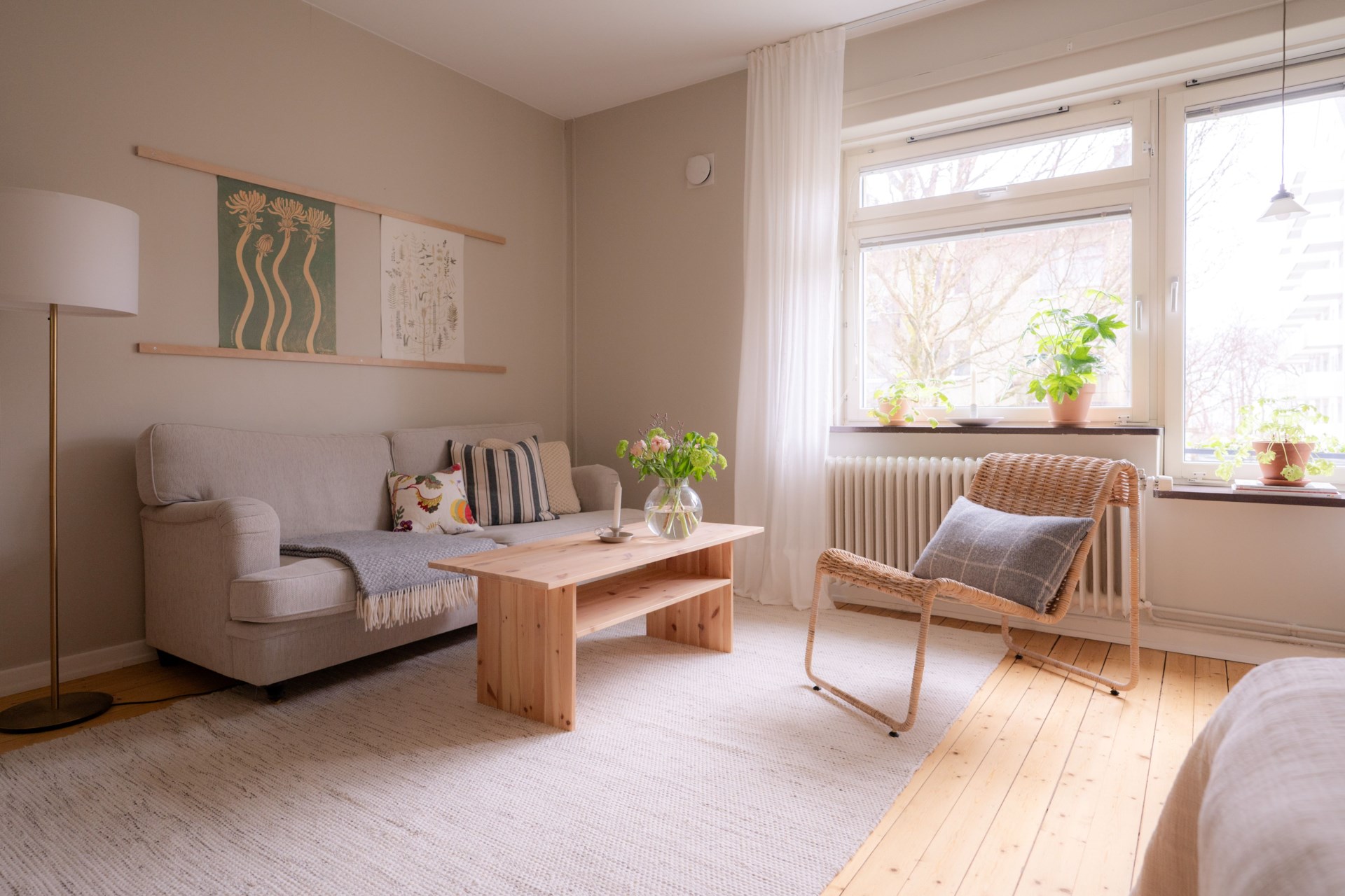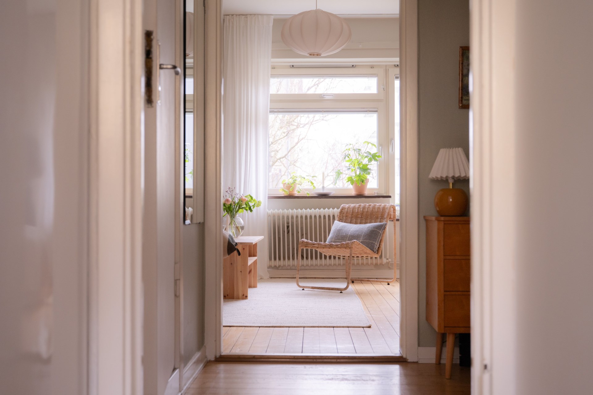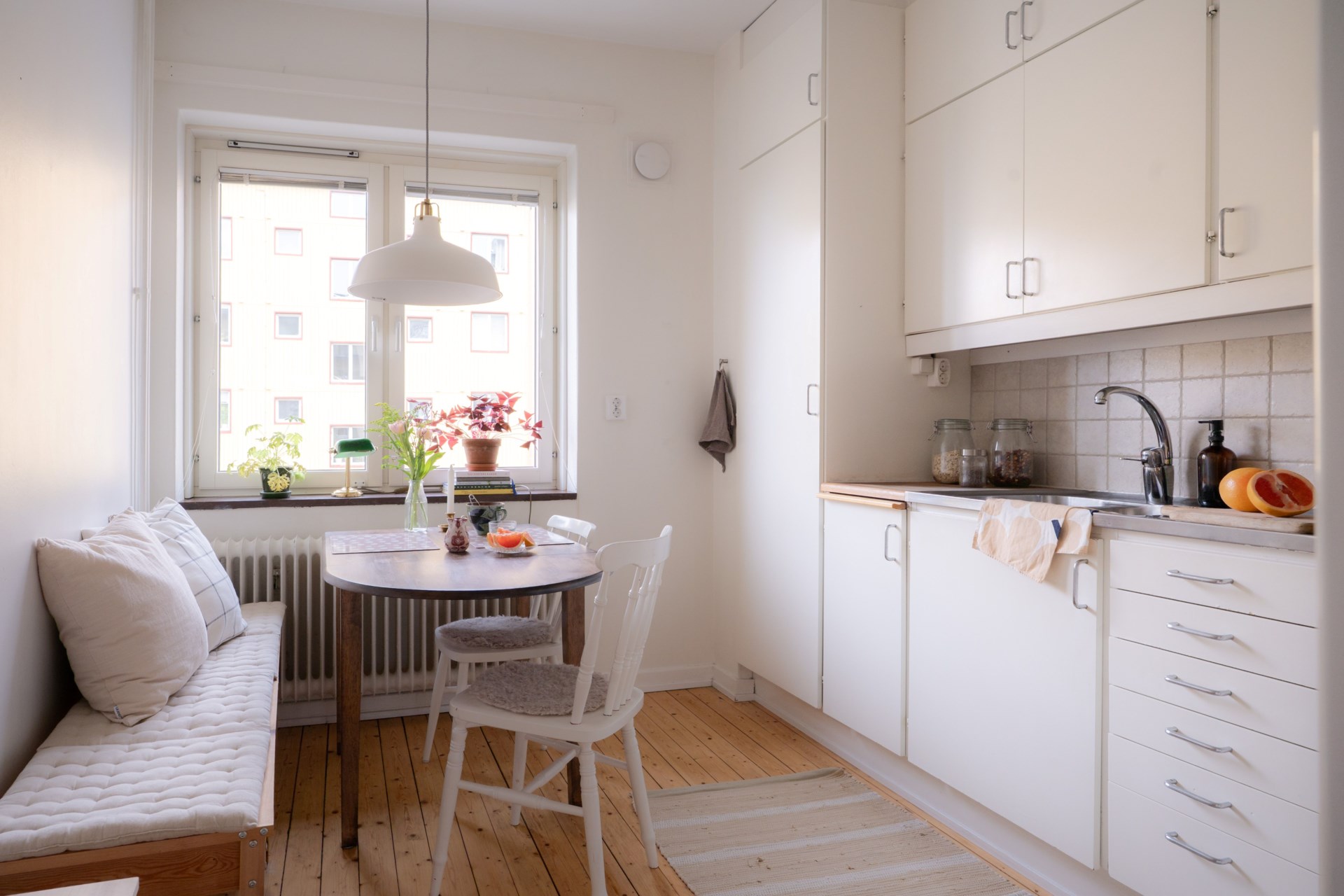 Här presenteras ett hem där det ljuva 40-talets byggnadsstil fått bevaras, men med moderna inslag för att skapa en bekväm vardag. Solstrålarna faller mjukt över det charmiga brädgolvet och takhöjden tillsammans med stora fönsterpartier förstärker den luftiga känslan. Köket är praktiskt och rymligt, som tillsammans med badrummets sobra design checkar av alla boxar för nästa drömhem.