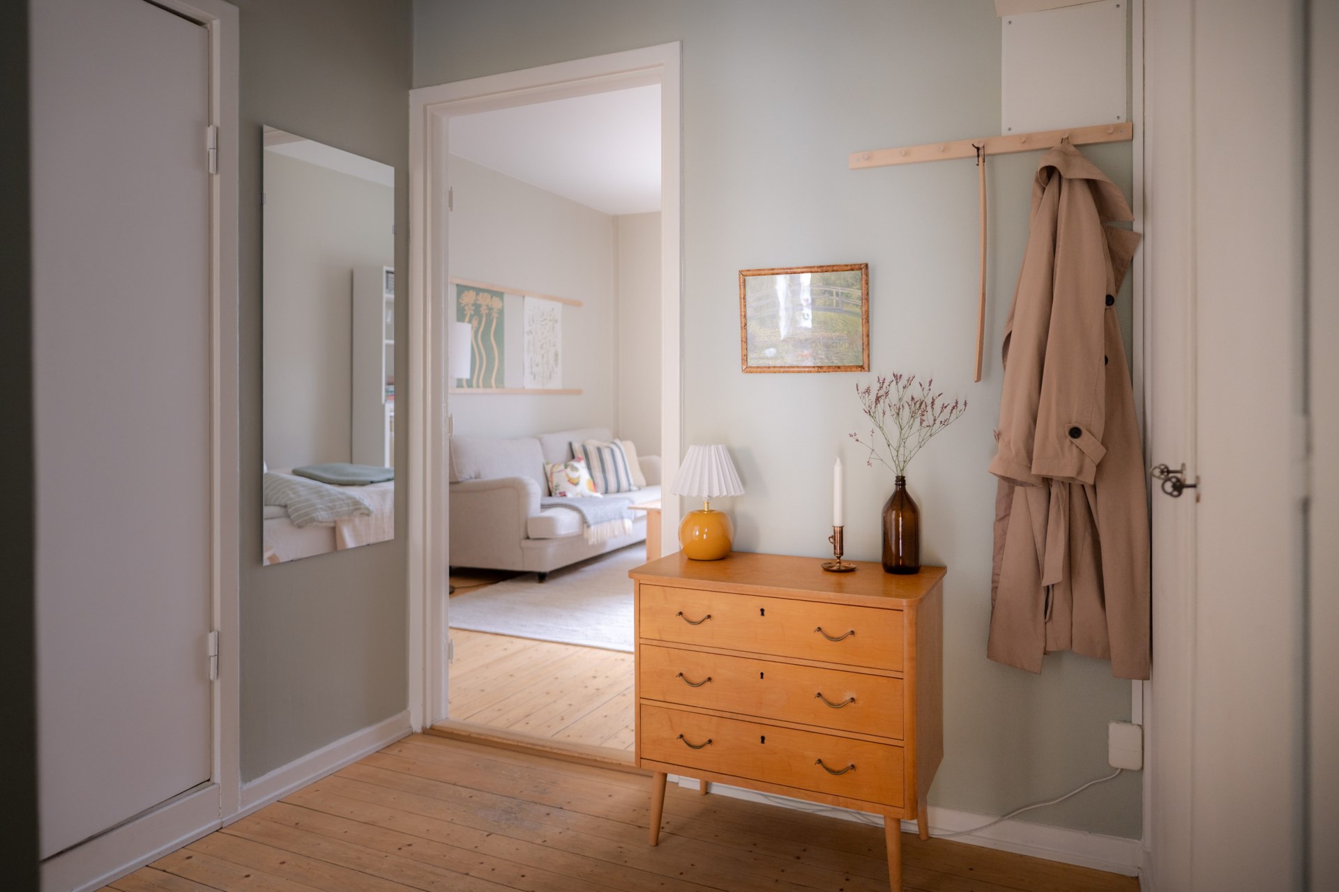 Bostadens dryga 37 kvadratmeter rymmer allt du behöver för ett hem att trivas i länge. Köket är inbjudande och ger utrymme för både matlagning och samtal, med matplatsen intill som en naturlig del av helheten. Allrummet är en plats för mysiga hemmakvällar i soffan. Rummet har en flexilitet i möbleringen, där plats för dubbelsängen kombineras med soffgruppen intill utan avkall på känslan av rymd. Även badrummet håller en god standard, med ljust kakel och klinker, sedan stambytet 2005.