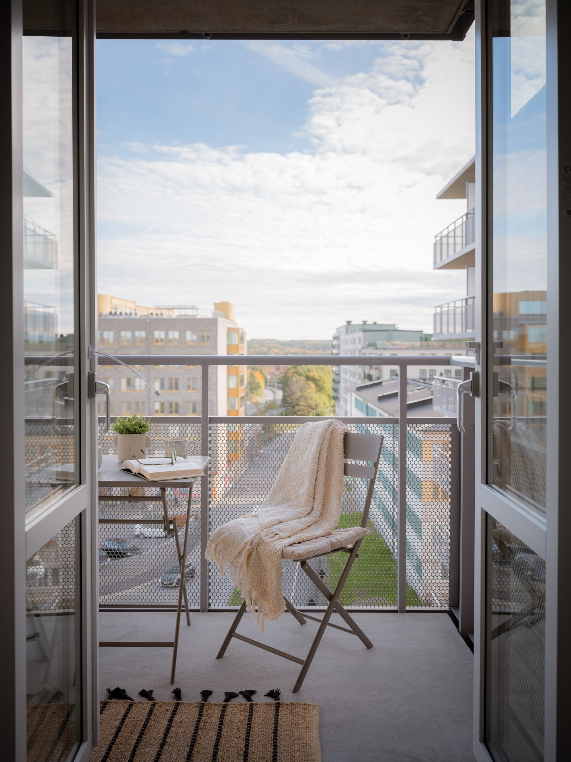 Denna välplanerade genomgångstvåa har en öppen planlösning där du får en ljus och luftig atmosfär som inbjuder till avkoppling och gemenskap. Den mysiga balkongen nås från vardagsrummet och ger dig möjlighet att avnjuta morgonkaffet i solen. Det trendiga köket från Ballingslöv är en dröm för matlagningsentusiasten, komplett med stilrena vitvaror från Cylinda. De öppna ytorna skapar en känsla av gemenskap, perfekt för både familjeliv och sociala sammankomster där kök och vardagsrum sömlöst flätas samman.