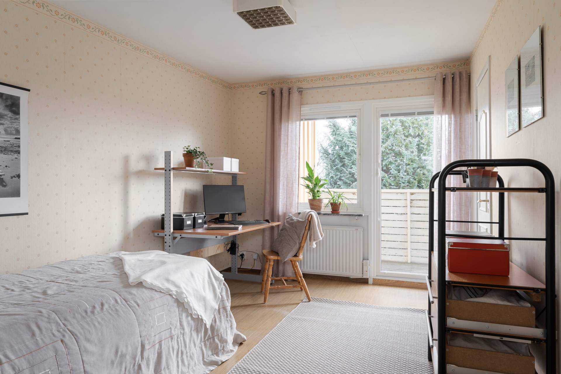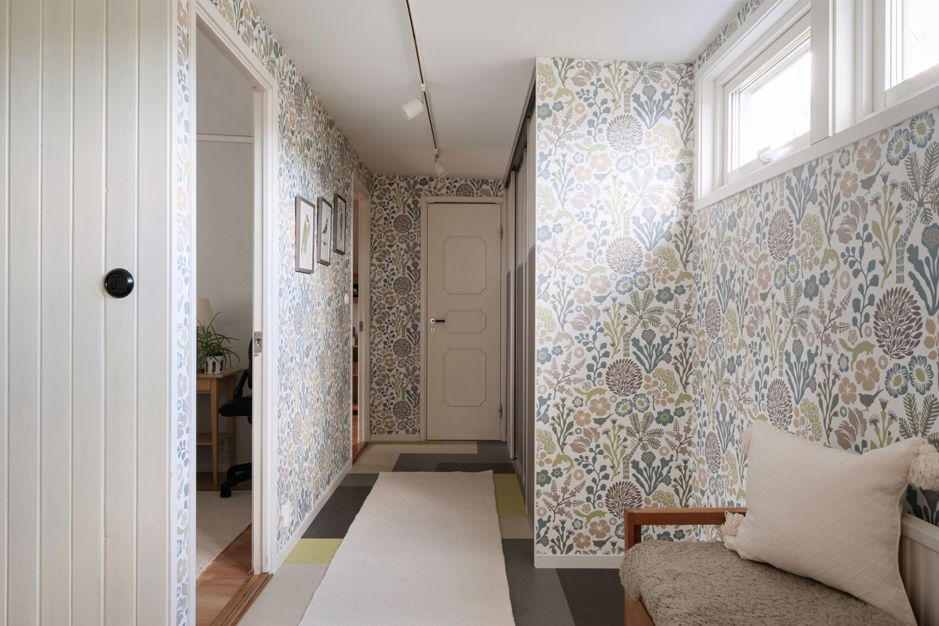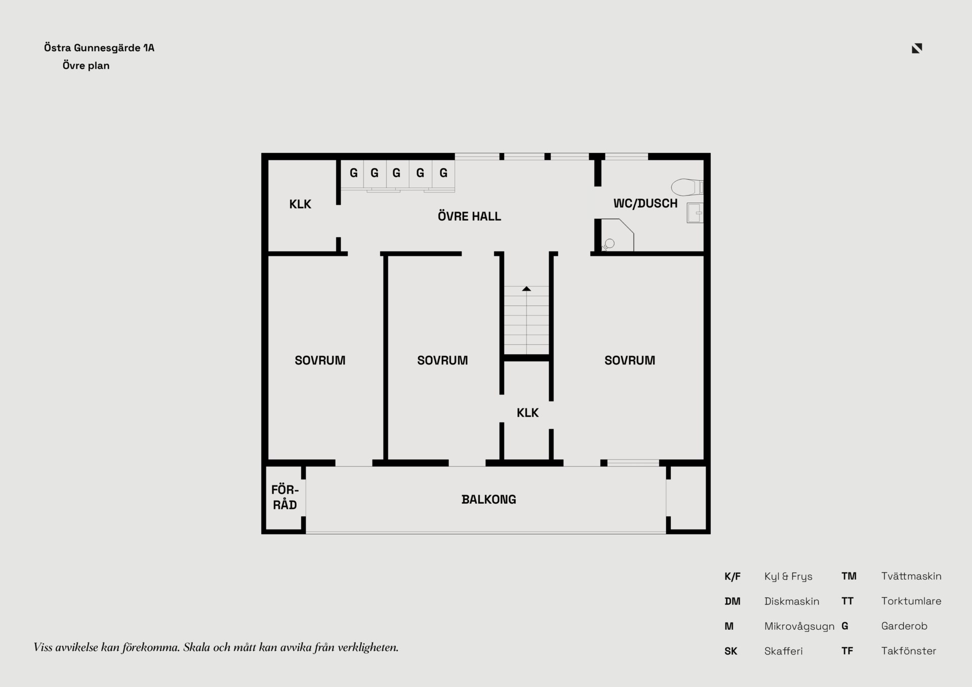 På övre plan hittar du hemmets mer privata del med tre sovrum, WC/dusch samt goda förvaringsmöjligheter i klädkammare. Härifrån nås även balkongen, som blir en härlig plats att vädra sängkläder, odla i kruka eller bara få en stund i det fria.