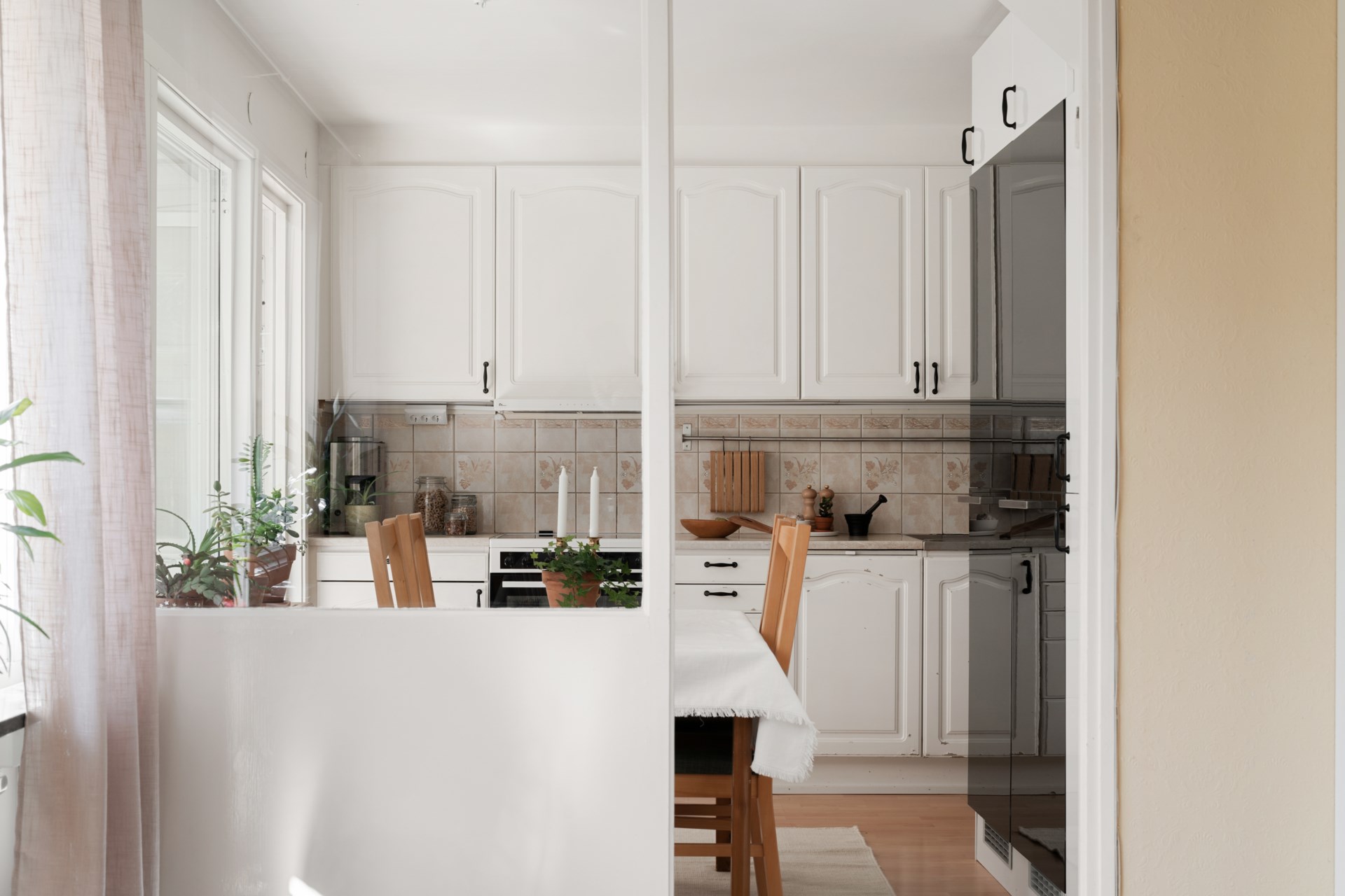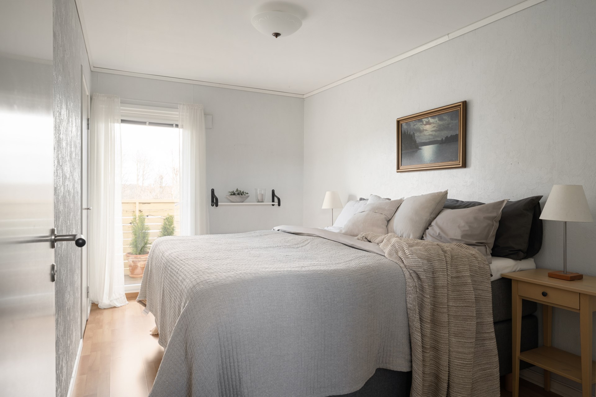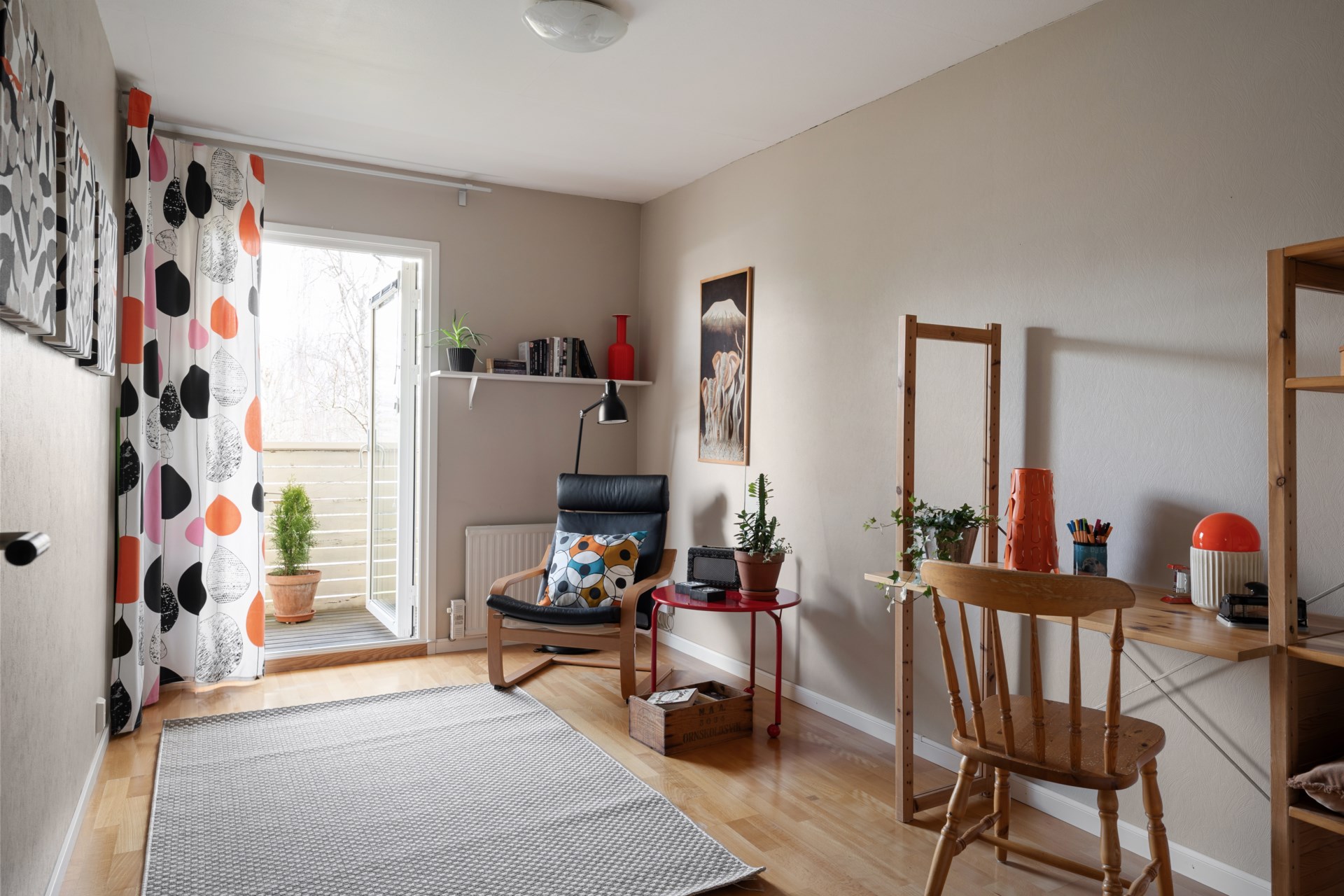 På övre plan hittar du hemmets mer privata del med tre sovrum, WC/dusch samt goda förvaringsmöjligheter i klädkammare. Härifrån nås även balkongen, som blir en härlig plats att vädra sängkläder, odla i kruka eller bara få en stund i det fria.
