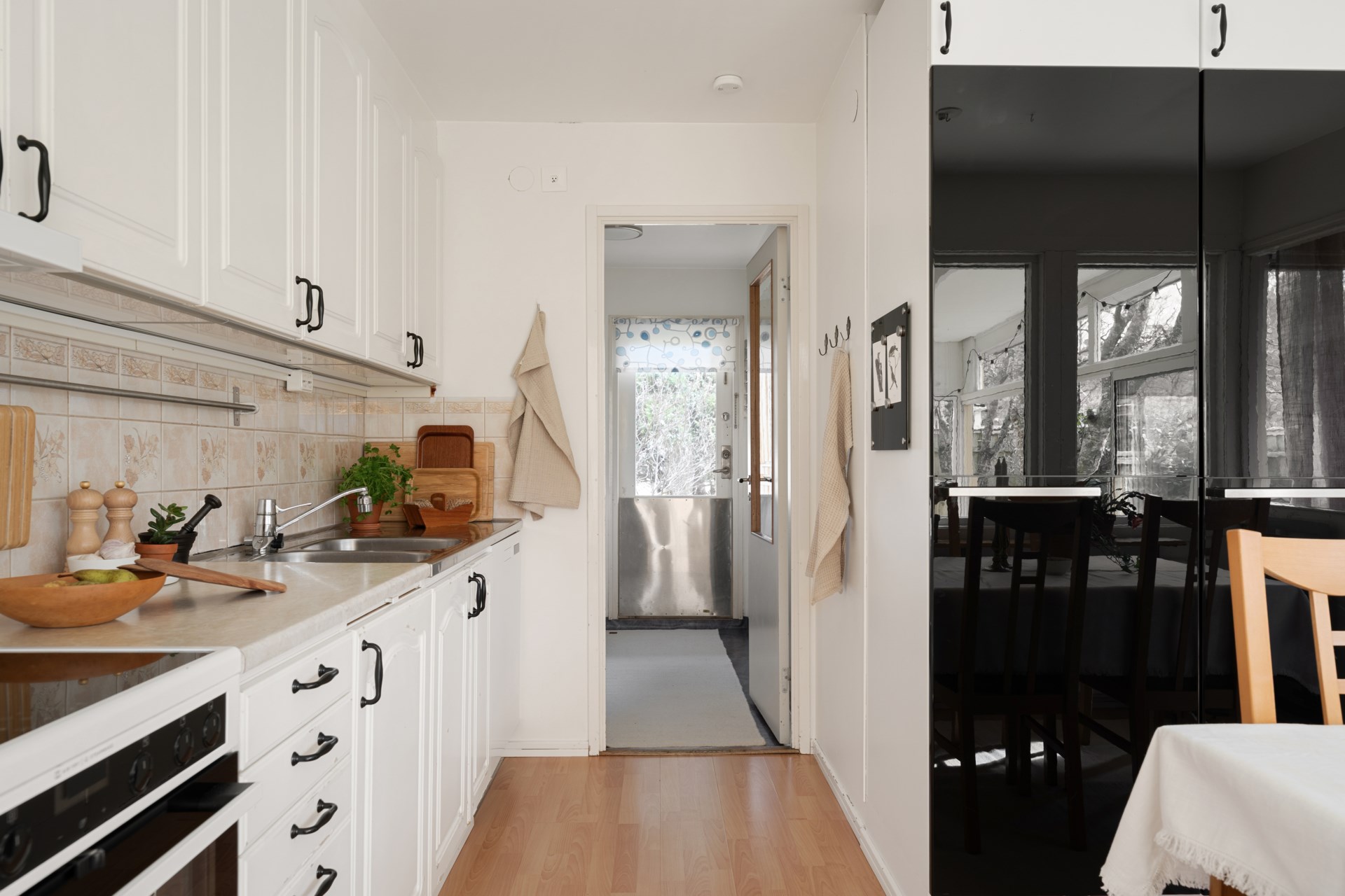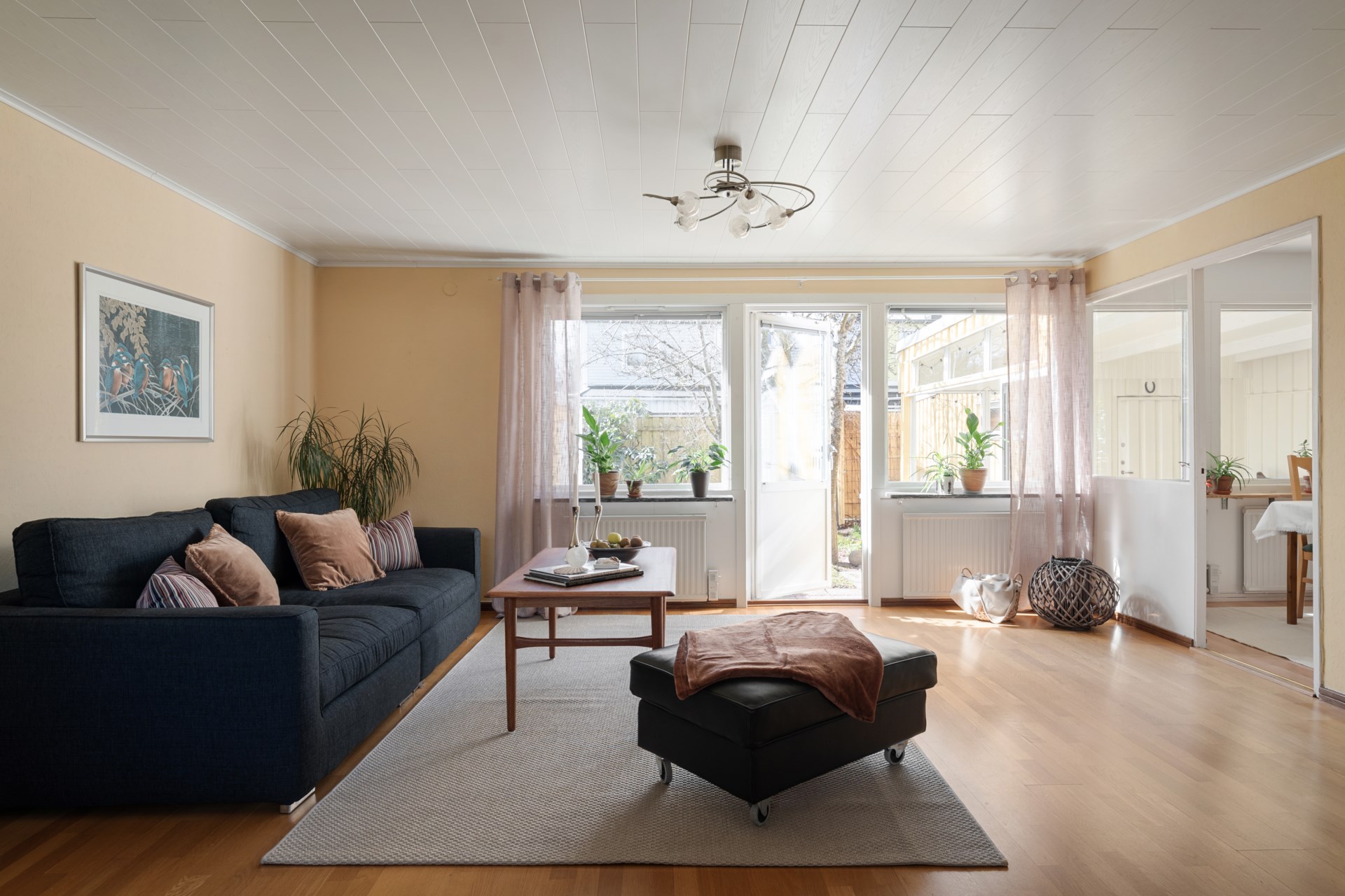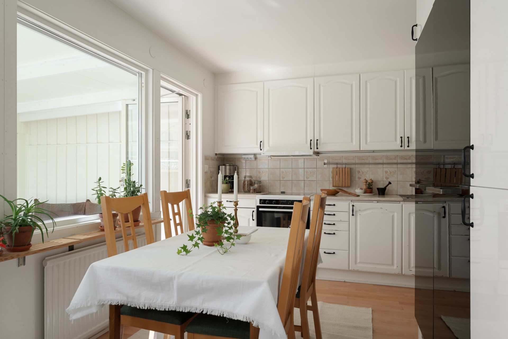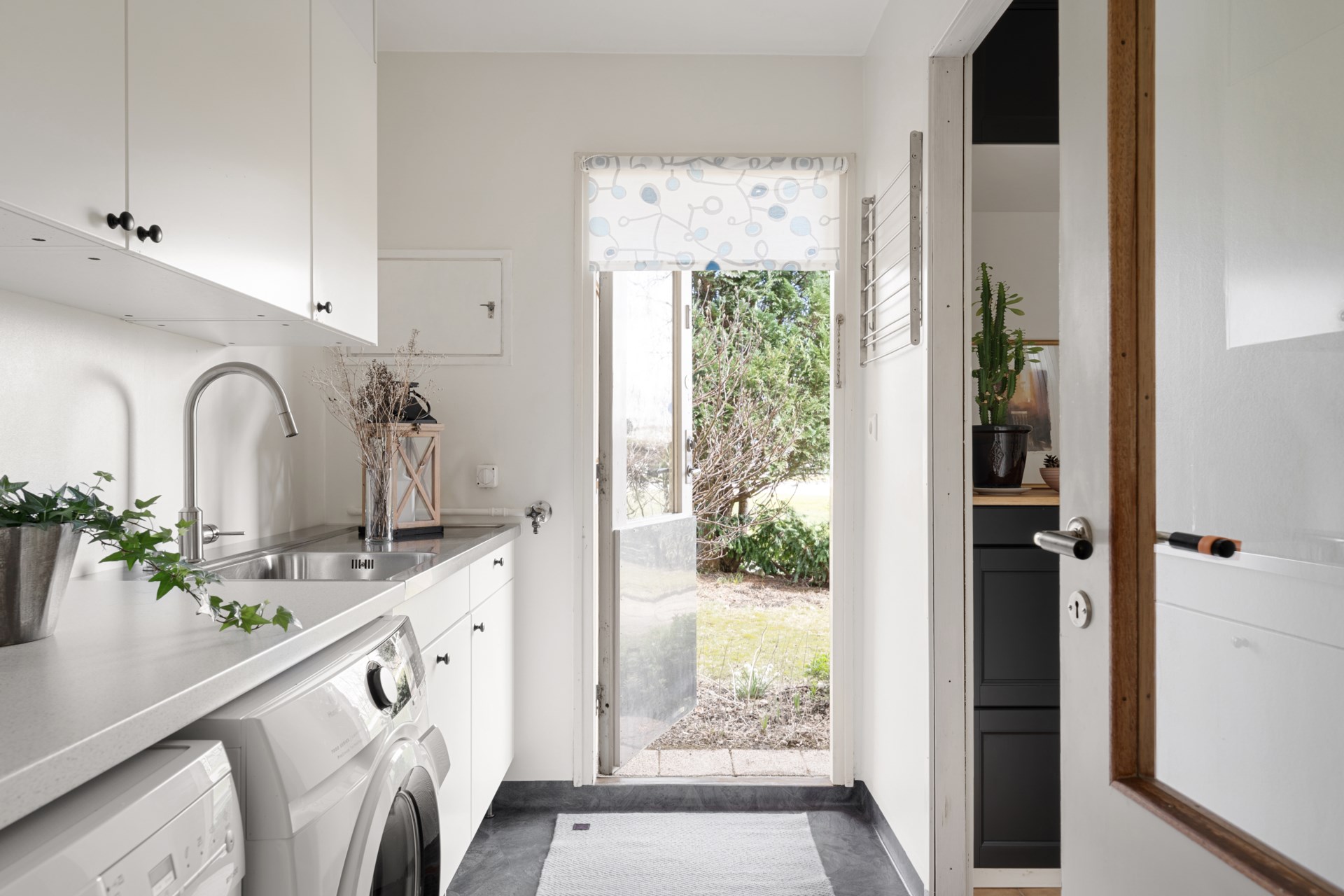 Hemmets naturliga favoritplats blir ofta det inglasade uterummet, ett sommaruterum som förlänger säsongen och suddar ut gränsen mellan inne och ute. Precis utanför väntar den lättskötta trädgården i västerläge, perfekt för eftermiddagssol, grillkvällar och en liten gräsyta att njuta av. Här finns även kallförråd för trädgårdsprylar. Som en extra bonus har huset en framsida med liten altan i morgonsol, en lugn plats för dagens första kopp.