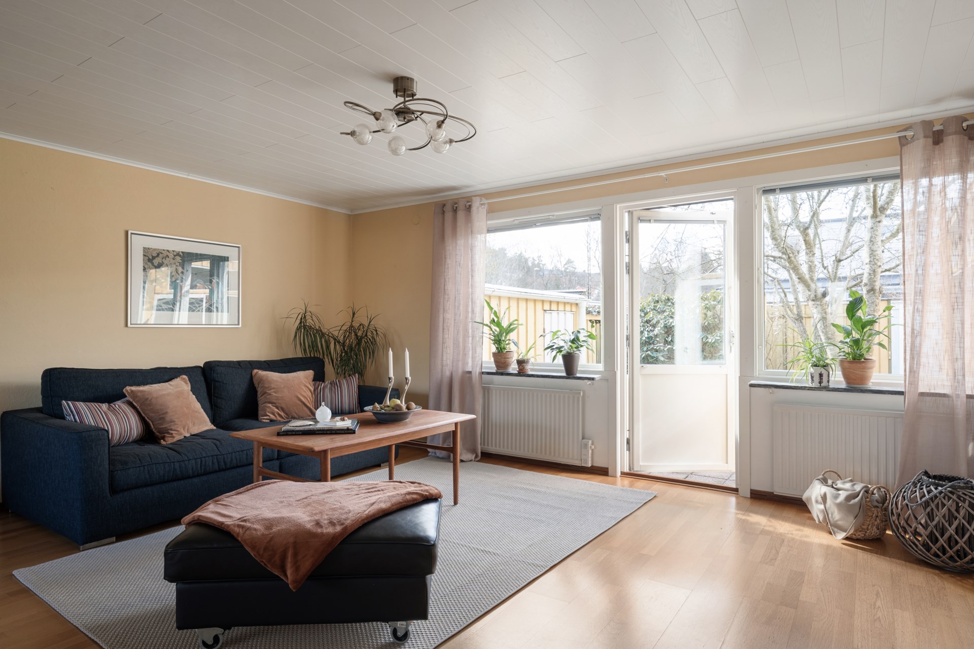 Familjevänligt radhus i Tuve med uterum, trädgård mot både syd och väst samt garage i länga.