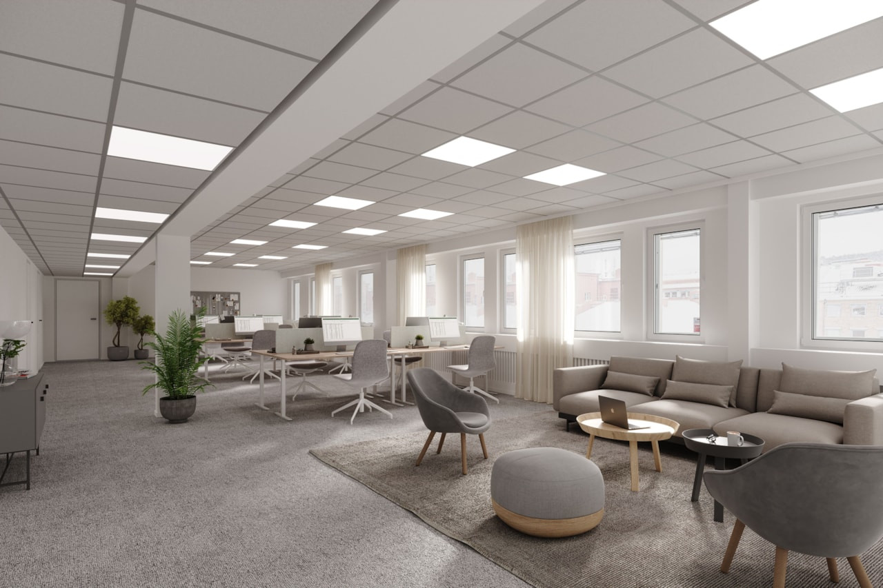 Ett kontor med mycket ljusinsläpp som ger en behaglig arbetsmiljö. I dagsläget en blandad planlösning med kontorsrum och en öppen yta för t ex aktivitetsbaserat kontor. Lokalen går att anpassa för att matcha ert företags behov. Vid anpassningar försäker vi alltid ha hållbarhet och återbruk i åtanke. På bara 3 minuters promenad når man spårvagn, Willys, ICA Maxi, gym och flera restauranger. Parkeringsplatser finns att hyra. Välkommen att kontakta oss för mer info och vising!