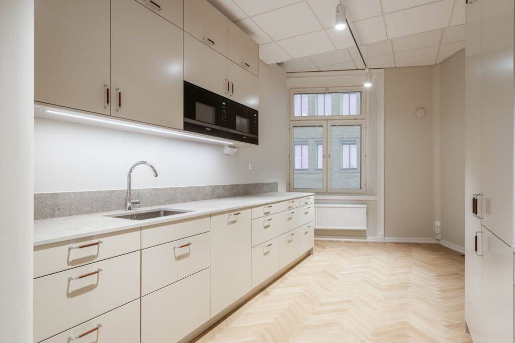 Lokalen rymmer flera kontors- och mötesrum i olika storlekar samt ett trevligt pentry och pausutrymme. Den pågående renoveringen syftar till att skapa en inspirerande arbetsmiljö genom hållbara materialval, flexibla planlösningar och moderna tekniska lösningar.