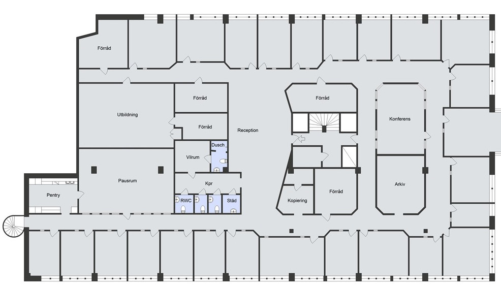 Lokalen är idag rumsindelad men kommer att renoveras i samband med ny hyresgäst. Här ges en unik möjlighet att själv påverka planlösning och ytskikt – antingen med hållbarhet och återbruk i fokus eller med en helt ny och modern känsla.