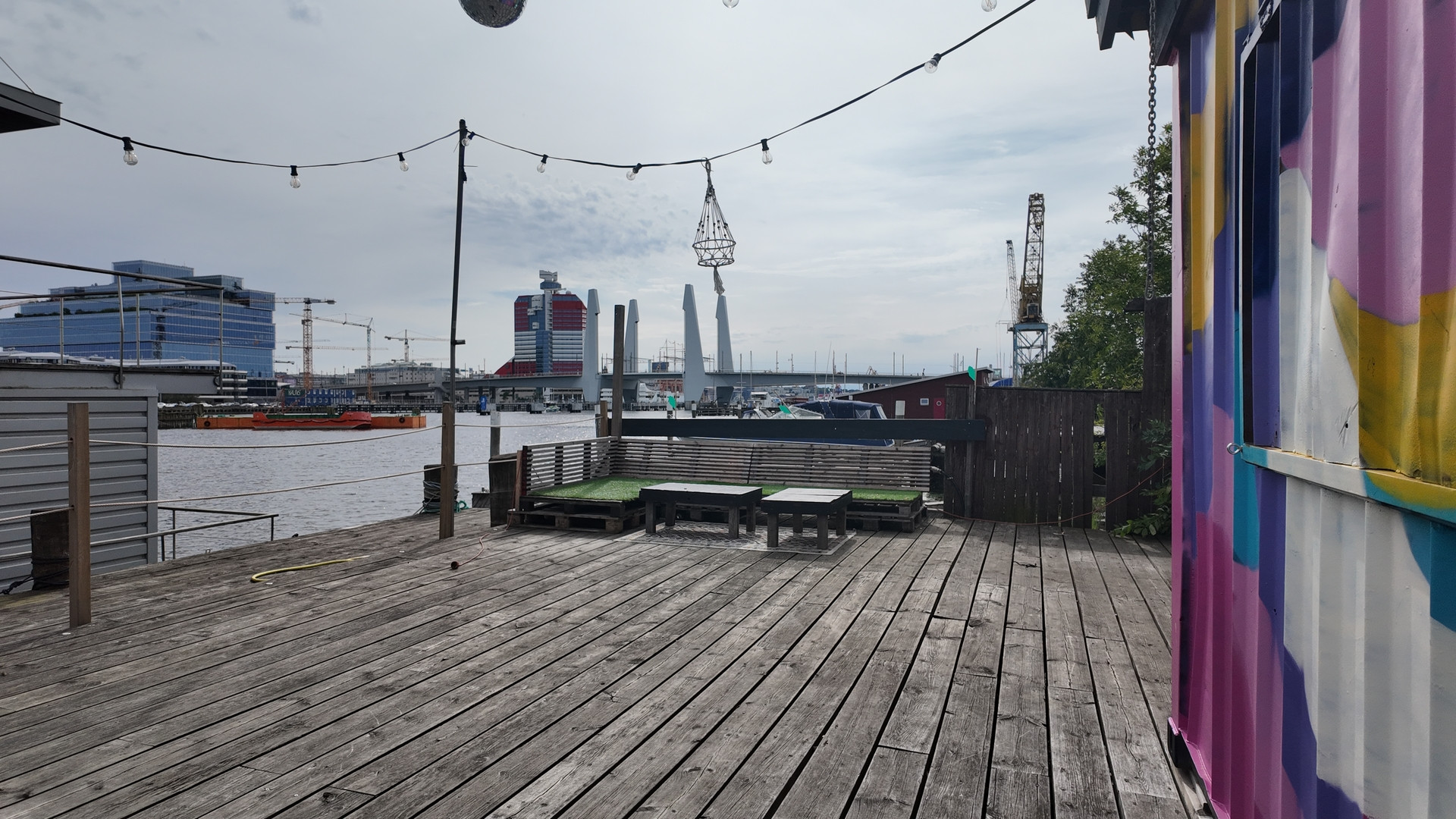 I huset finns Pallazot, en restaurang, bar och live-scen. Här bjuds det på mat, dryck, konserter på restaurangens brygga, dagsfester och quiz. På fredagar och lördagar är takbaren öppen, med utsikt över Göta älv och södra älvstranden. En kort promenad så når du ett tiotal olika lunchrestauranger. Här finns något för alla!
