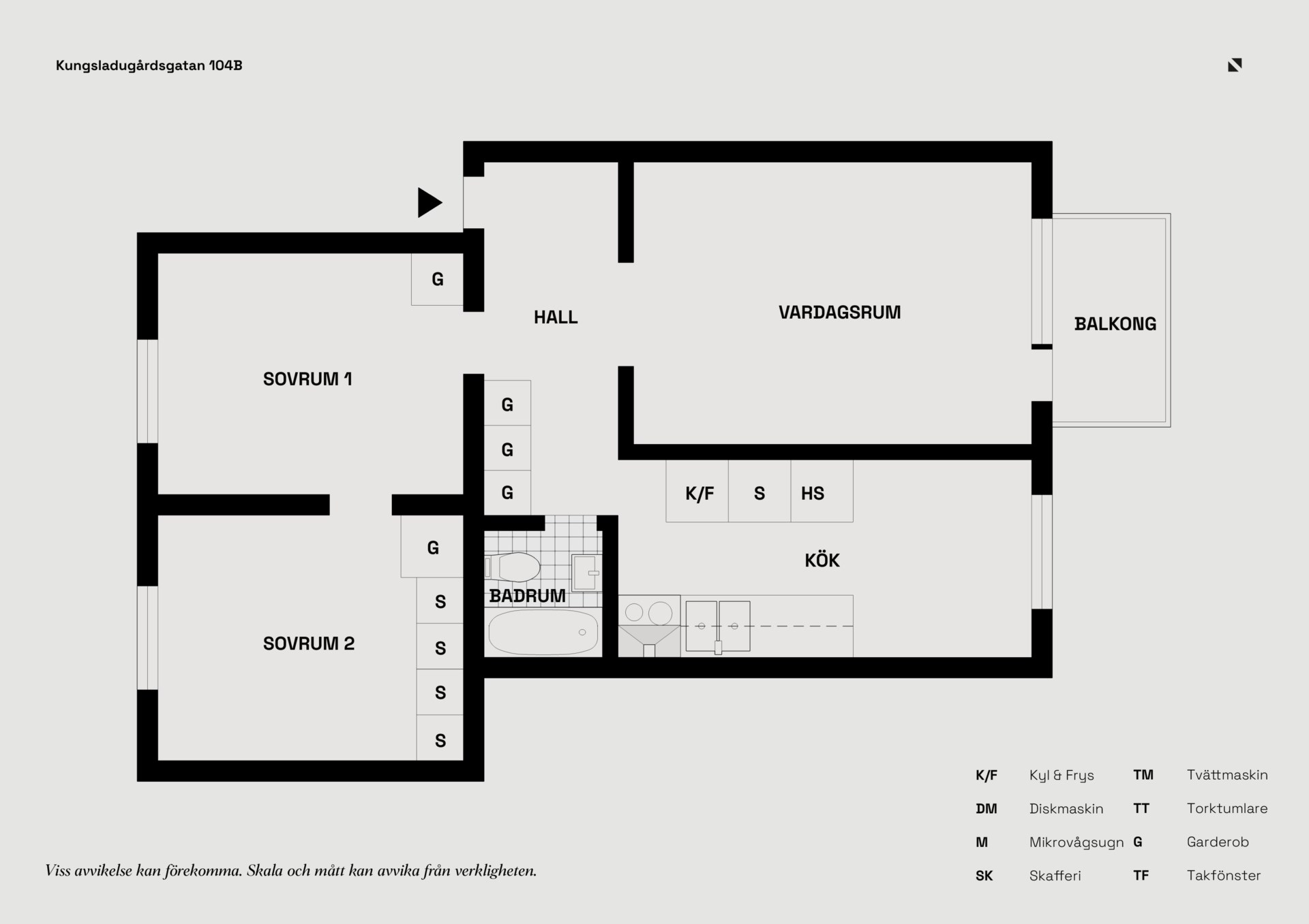 Det rymliga köket från 70/80-talet kan komma att önskas renoveras, men dess storlek utgör en ypperlig grund. Gott om plats finns för bra förvaring och tacksam arbetsyta. Invid fönstret, som skänker vackert ljusinsläpp, finns plats för en större matgrupp. De två väl tilltagna sovrummen rymmer båda två dubbelsängar med tillhörande sängbord. Inbyggda originalgarderober i hallen och sovrummen löser klädförvaringen. Helkaklat badrum!